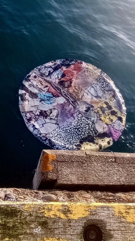 Since then, her work has evolved into a tactile exploration of texture, color, and material. From moss and lichen to metal scraps and engine parts, she dives into both natural and man-made worlds, zooming in until the smallest details become vast imagined landscapes. Macro photography plays a key role: a thin layer of cambium becomes a canyon; a pebble becomes a planet. Through her collages, installations, and machines, she invites viewers into these miniature universes.