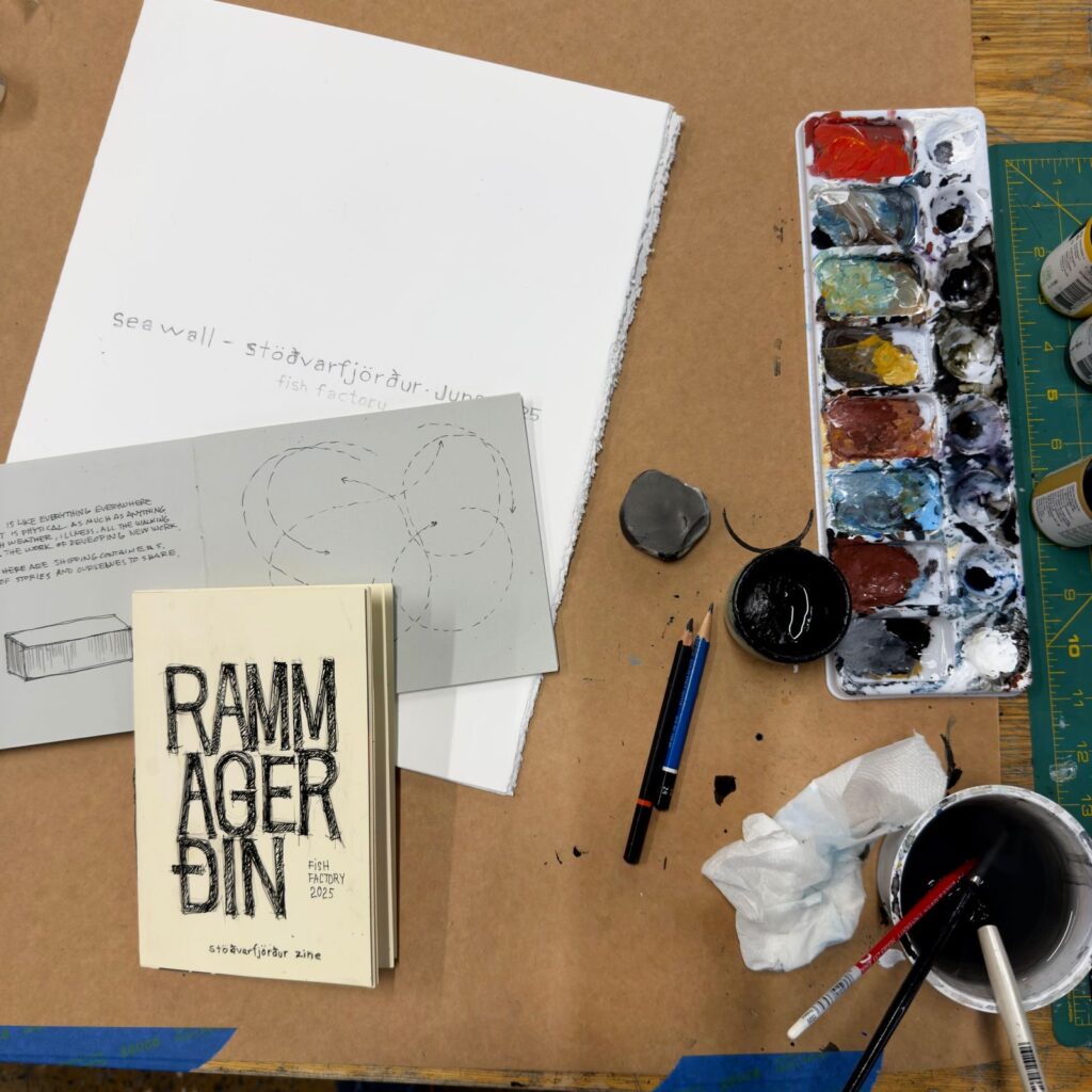 Before arriving at the Factory my practice was primarily about painting and works on paper. I came to Fish Factory wanting to explore abstraction more fully and also respond to any direct experiences here. At once I found the environment to be overwhelming and beautiful, the dominance of the fjord architecture, the sculpted cathedrals. Profound encounters with nature.
