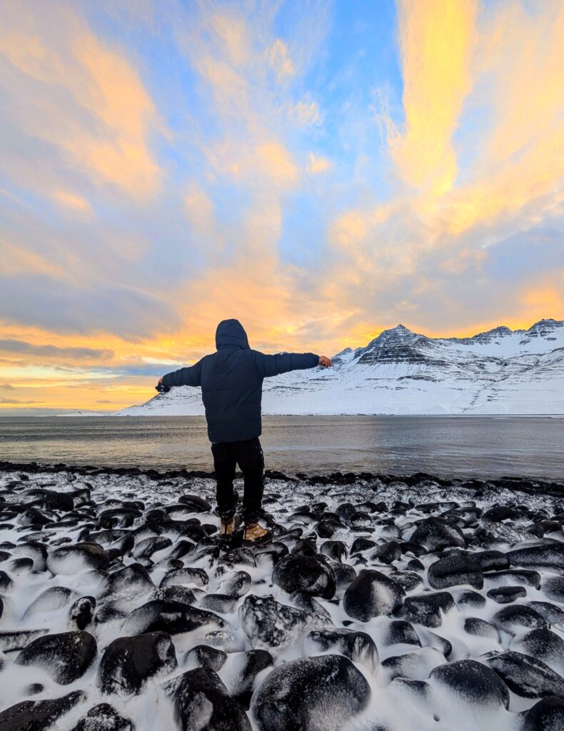 I finished as much of the book as I needed to – East Iceland in January isn’t exactly heavy on distractions – but the best moments had little to do with rigid productivity. Hiking to nearby beaches, geological formations, and the harbor (when there weren’t power-outage-inducing blizzards), chatting with other artists, vibing to live Icelandic punk rock, and taking in the aurora, polar stratospheric clouds, reindeer, etc., tapped into a creative flow state that had been absent for a couple years. I wrote some poems and restarted work on a collection of haiga – a Japanese artform featuring a short poem (haiku, senryu) combined with a visual element (photography in this case) – based on my travels in the Nordic countries. Stöðvarfjörður will undoubtedly feature heavily in the final version of the project. Something, along with my time at the Fish Factory, for which I will always be grateful.