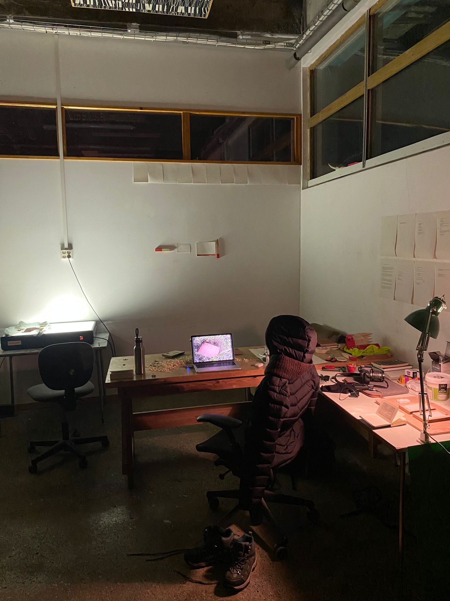 During the November residency, I produced a twelve part series of poetry and text segments containing ideas on geothermal energy, memory, histories of recording, subterranean incubation, burials, artefact, absence, futility and deep time. These texts were printed on vellum, wrapped in clay and buried around the village of Stöðvarfjörður at the start of the month. I then excavated the remaining eight pieces at the end of the month. The final text was also placed at the Mid-Atlantic ridge in between the North American and Eurasian tectonic plates in Thingvellir. Alongside this project, I produced a series of small pencil drawings and carved wooden replicas of Roman wax tablets.