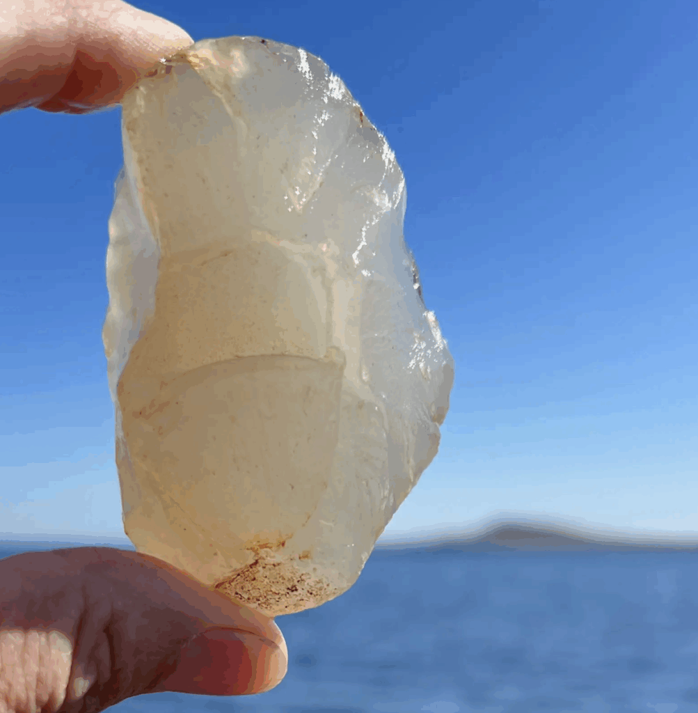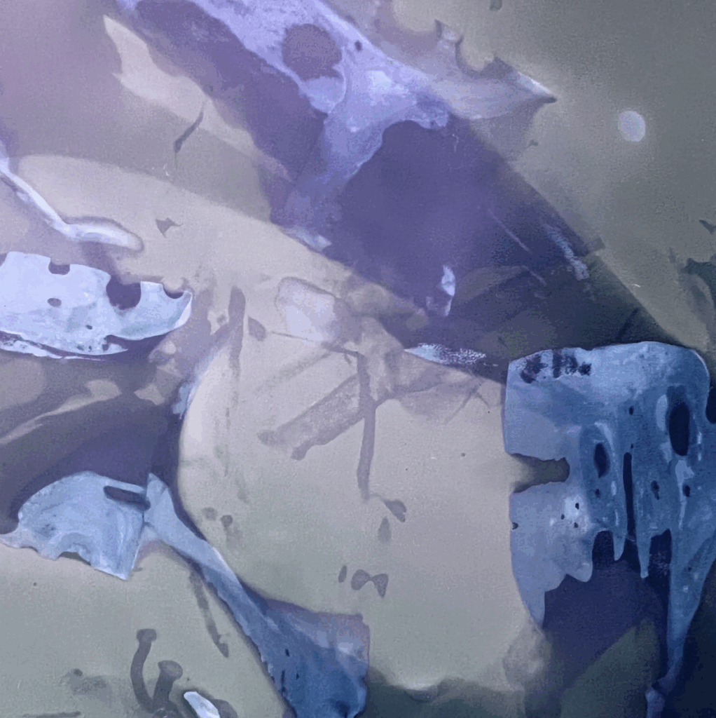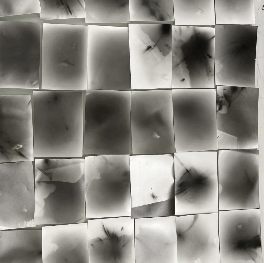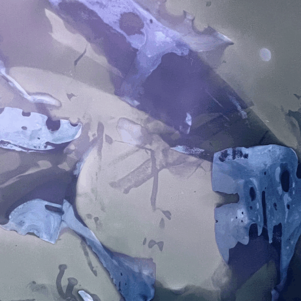 “It is a long journey from Aotearoa to Iceland. I was interested to think about what it means to be a guest or manuhiri in such a place- so far from my home. In my creative practice I often work with minerals and metals and I was keen to find out how it would feel to be in a landscape such as Iceland. How might minerals be thought of as hosts? How might my strategies for working with earthly materials shift in a different location? The earth in Iceland felt very active- earthly forces are very apparent, boulders fall from mountains, volcanoes erupt, the ground shifts and flows. I visited the historic mine site at Helgustadir where the crystal Iceland Spar was mined. This crystal had a unique property – double refraction – and was used in imaging technology. I used the crystal in pinhole cameras, refracting the summer sun and capturing the light on photographic paper. Over the month of May in Stöðvarfjörður, the days grew longer and longer, until there was almost no night darkness. Walking home from the studio at 1am, the birds would be singing. Capturing light became my main activity during my time at the Fish Factory as I worked with seaweed and lupins to make lumen prints and cyanotypes. Light and shadow, air and earth, water and stone.