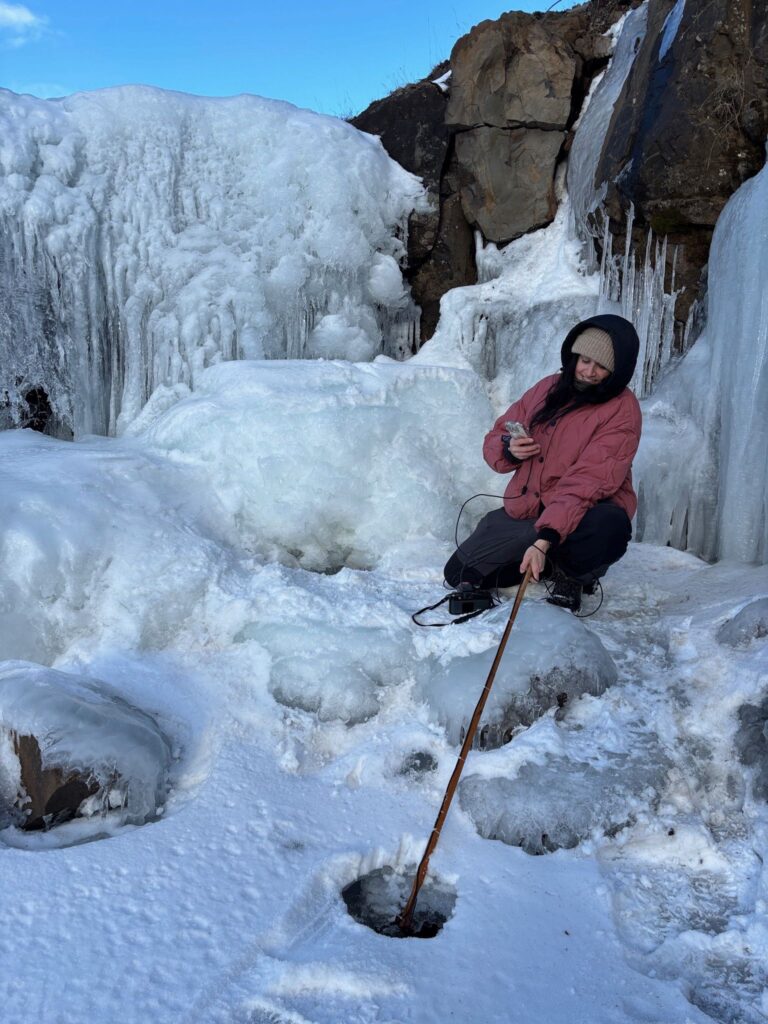 Through these daily walks I began to notice how forms in nature echoed one another: transparent layers of ice forming, patterns in rock, weather moving across the land and textures appearing and disappearing with changing conditions. I was also drawn to the quiet traces of human presence around Stöðvarfjörður during the winter months.